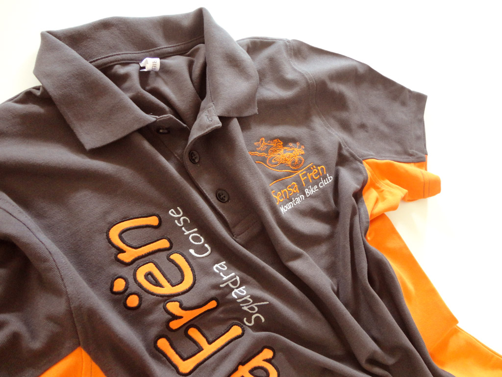 Per festeggiare l’ambito (e sudato !) anniversario, abbiamo pensato ad un coordinato polo / felpa con la grande scritta ‘Sensa Fren’ in verticale, con applicazioni in panno sulla felpa ed in jersey (più leggero ) sulla polo. Felpa sportiva fullzip con cappuccio e polo bicolore, con logo e bandiera Italiana ad arricchire due capi tutti giocati sui colori sociali, arancio e nero. Buon anniversario !